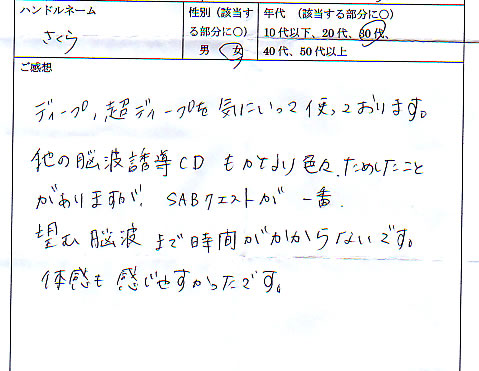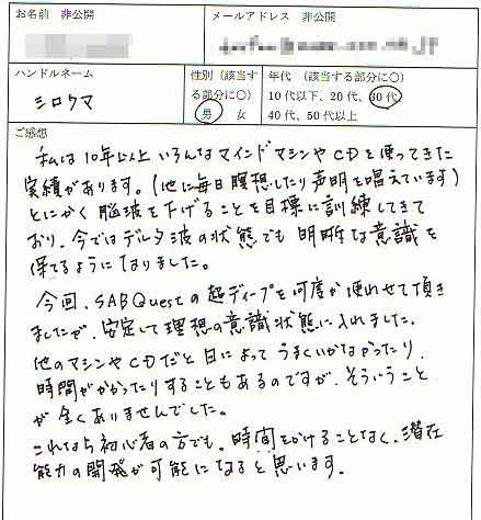 『SAB Quest』についてお客様より寄せられたご意見を紹介させて頂きます。